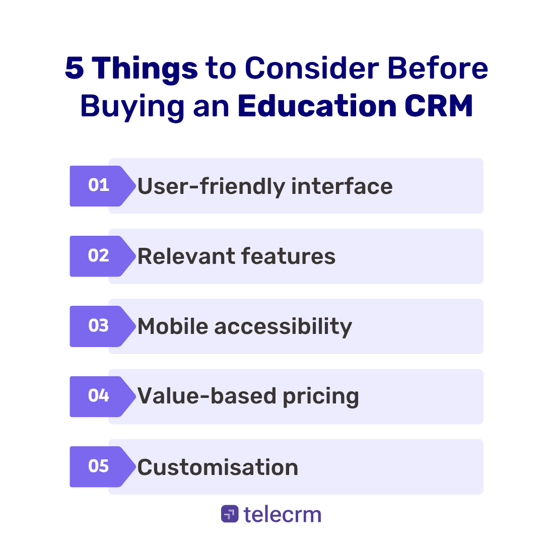 By now, you’re well aware of two things: You need CRM for educational institutions and it needs to have the aforementioned features. But before you buy a CRM for your education consultancy, you need to keep the following things in mind: