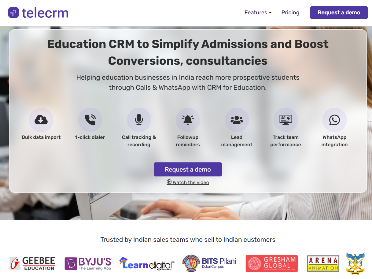 It’s one of the best CRM for education consultancy in the market. But its workings are not limited to that of consultancies. You can use Telecrm for any educational institute. It’s a CRM for higher education, coaching, schools, and basically any education-based organisation.