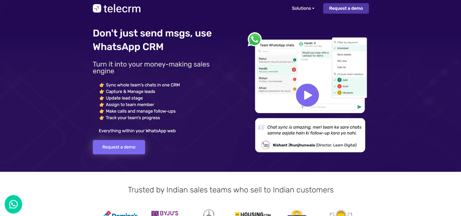 If you’ve decided to get WhatsApp API, you don’t have to look further. With Telecrm, you can not only create an e-commerce store on WhatsApp, but also manage all your leads and customers from one place.