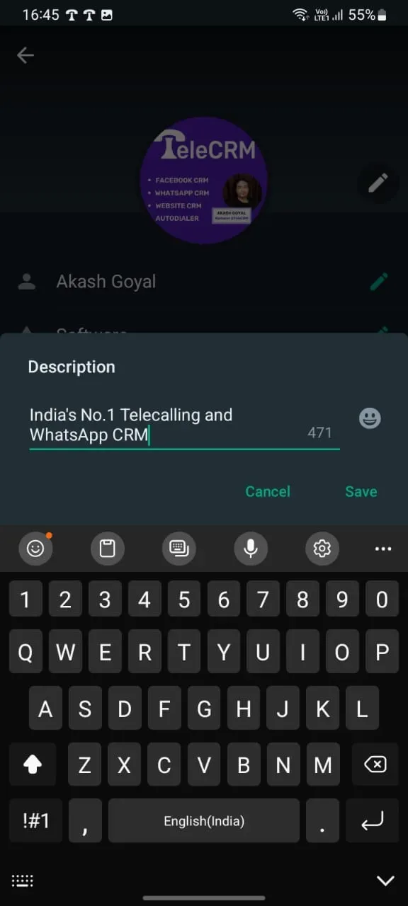 Click-to-call from WhatsApp: Instantly call a lead directly from WhatsApp chat, which makes responding to queries or follow-ups easier and faster (The call is redirected to the phone’s dialer.)