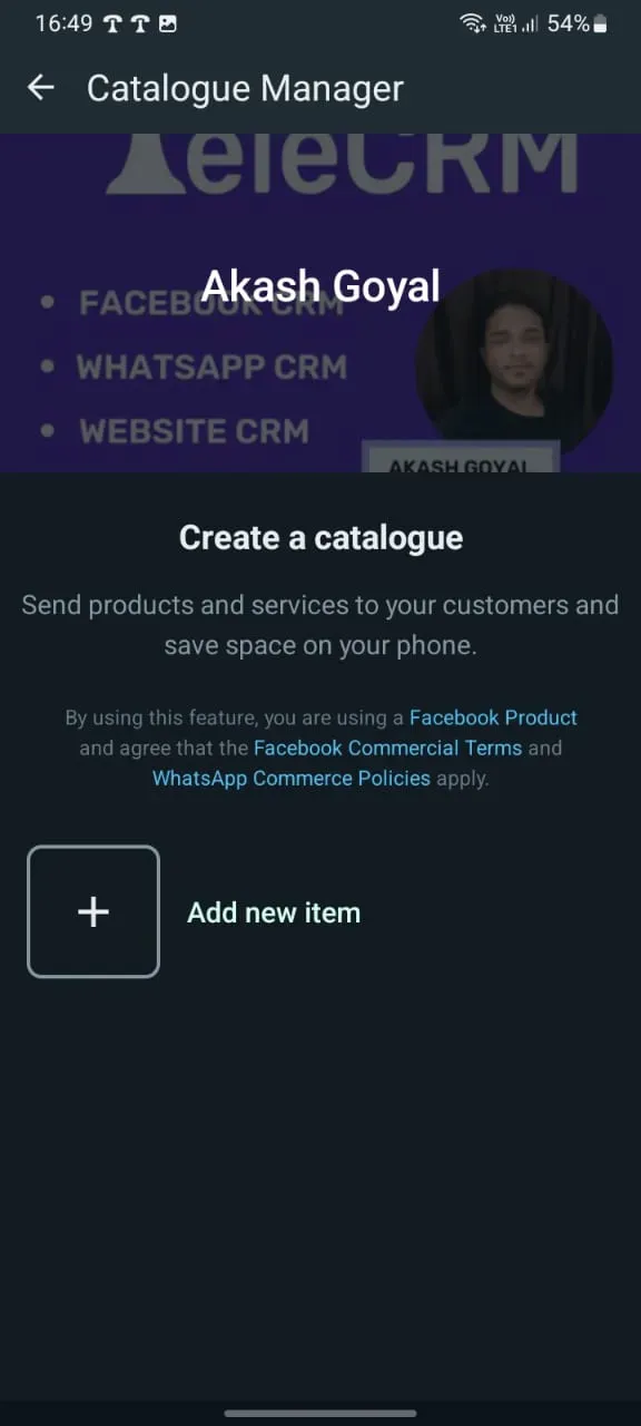 Create your WhatsApp Business account and verify your business phone number through OTP. In the settings, add the name and logo of your business.