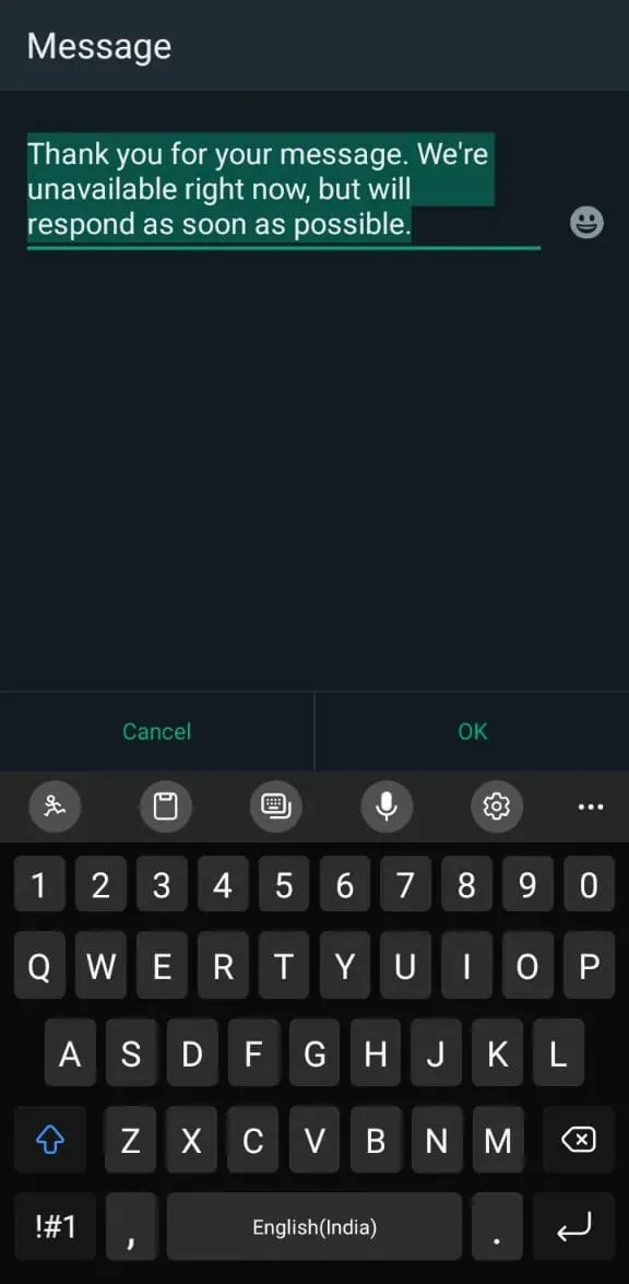 An away message is an automatic reply that is sent to your leads and customers when they try to reach you beyond your work hours.