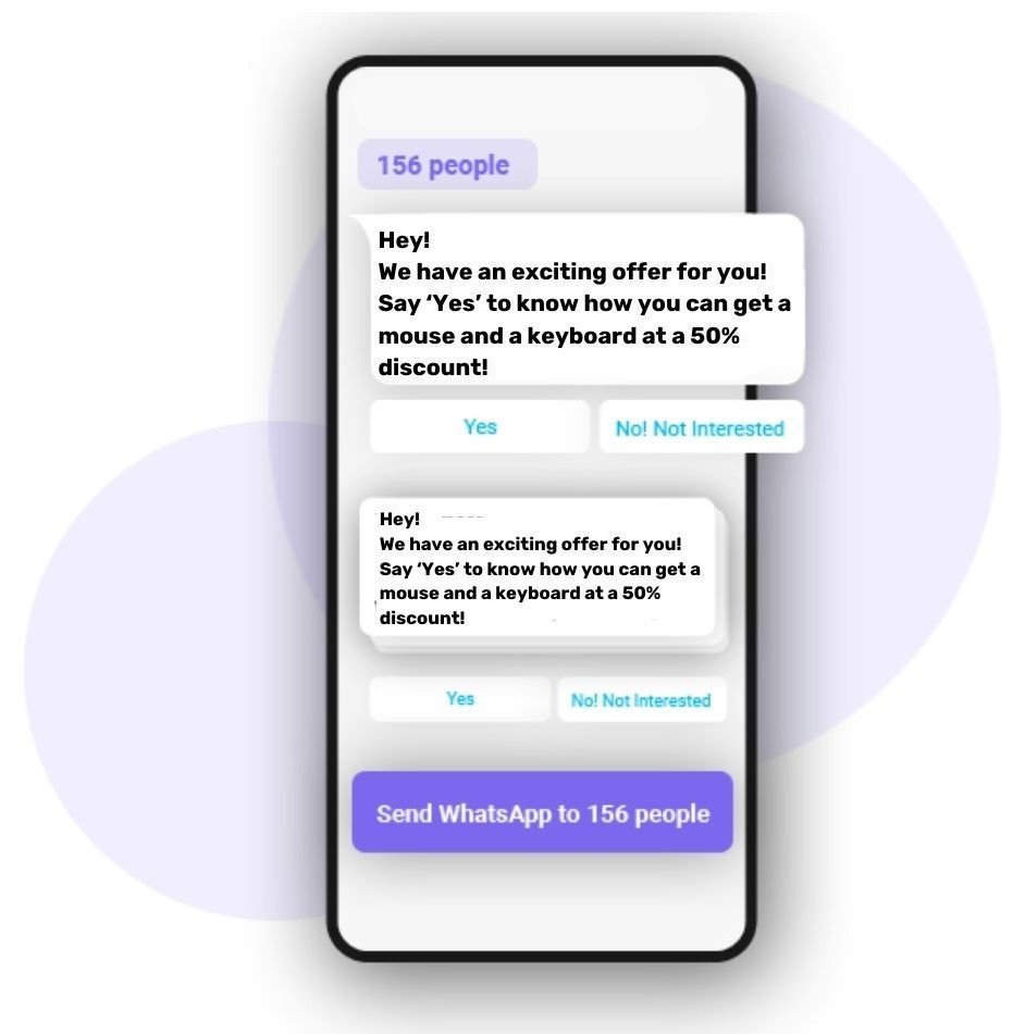 WhatsApp automation and WhatsApp chatbot may sound like they’re the same but they aren’t. While chatbots are used to answer queries that the customers initiate, WhatsApp automation is used to send timely reminders about payments, schedule follow-up calls and even promote upselling and cross-selling opportunities by sending bulk WhatsApp messages.